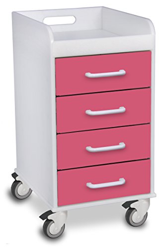TrippNT 52907 Polyethylene Compact Locking Cart, 14" Width x 27" Height x 19" Depth, 4 Drawers, Watermelon Pink