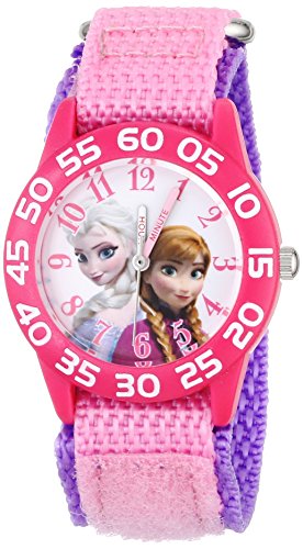 Disney Kids' W001790 Frozen Elsa and Anna Watch, Pink Nylon Band