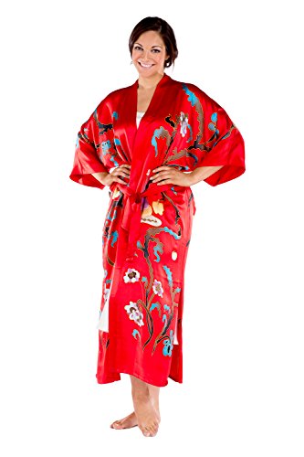TexereSilk Women's Luxury Silk Kimono Robe - Beautiful Gift Ideas (Graza, Venetian Red, Large/X-Large Petite) Suggestions WS0104-VRD-LXLP