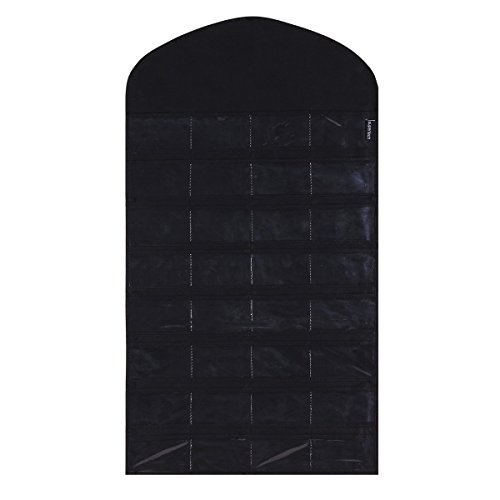 Supertech 32 pockets& 18 hook-and-loop tabs Hanging Jewelry Organizer Dual Sides Space-saving Household Accessory Holder Storage Bag (Mode B Black)