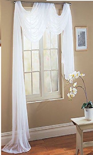 1 X 1kidandaheadache's Beautiful Elegant Voile Sheer Valance Scarf 37" X 216" Topper White by 1kidandaheadache