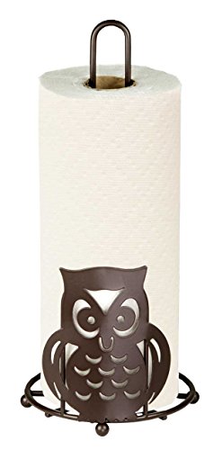 Home Basics Stylish Steel Owl Paper Towel Holder Organizer Dispenser Stand, Circular Base, Bronze (1)
