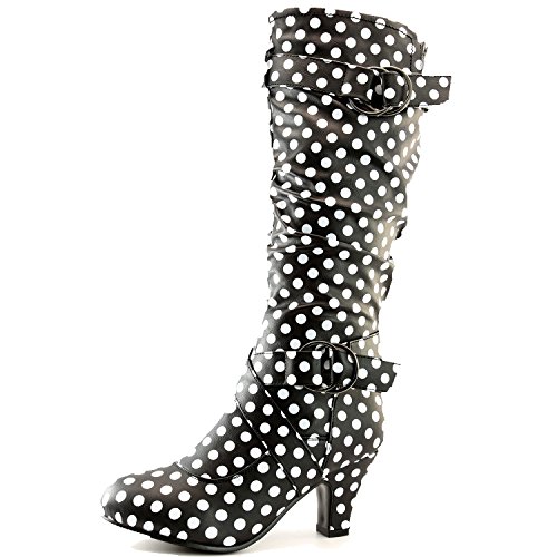 DailyShoes Women's Slouchy Mid Calf Strappy Boots with Ankle and Top Straps - 2" Heel Fashion Boots