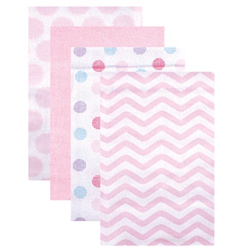 Luvable Friends Unisex Baby Cotton Flannel Receiving Blankets, Pink Dots 4-Pack, One Size