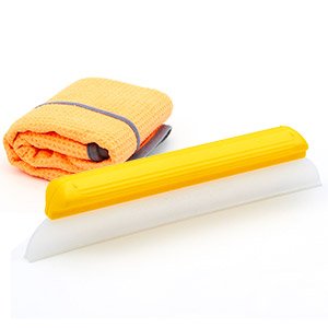One Pass Hydroglide 14" Waterblade Silicone Y-Bar Squeegee Yellow with XL Micro Fiber Towel