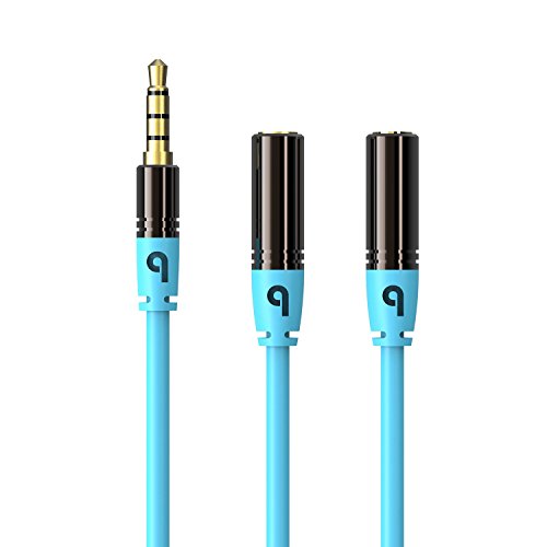 PlugLug - 3.5mm Audio Splitter Cable (Blue) 3.5mm Male to two Port 3.5mm Female - Compatible with iPhone, Samsung, LG Smartphones, Tablets, MP3 players, Bluetooth Speakers, and with Mic function