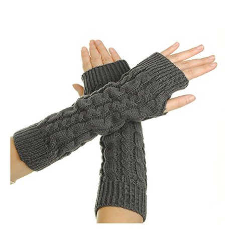 FuzzyGreen Epic Fingerless Gloves, Women Lady Girl Crochet Knitting Wool Braided Wrist Arm Warm Mitten Fingerless Long Gloves-Dark Grey