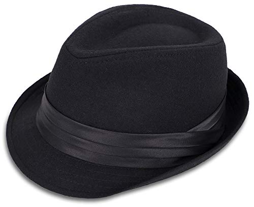 Simplicity Unisex Short Brim Structured Gangster Trilby Felt Fedora Hat, Black