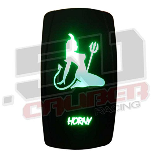 Rocker Switch ON/OFF Green LED Backlit - Horny - UTV, Auto, Boat [5362-A44]