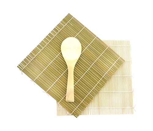 JapanBargain 3675 Sushi Mat Rice Paddle, 2Mats+1Paddle, Green/Yellow
