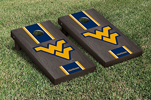 Stained Stripe Version Cornhole Game Set Color: Onyx, NCAA Team: West Virginia WVU Mountaineers