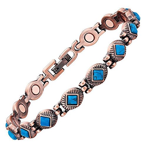ProExl Copper Link Womens Magnetic Bracelet Turquoise Stones Ventura with Gift Box