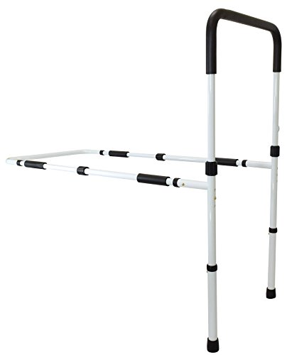 Secure EZBR-1W Bed Assist Hand Rail with Adjustable Floor Support and Safety Strap - Tall Grab Handle Fits Pillow Top Mattress - Tool Free Assembly (Floor Support Model with Safety Strap)