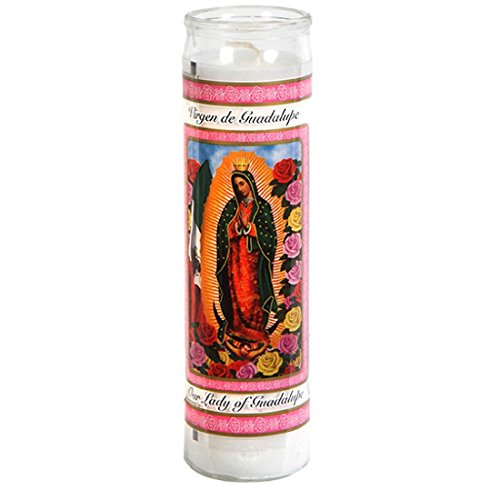 Our Lady of Guadalupe Glass Prayer Candles, 8", Devotional Candles