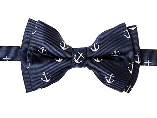 Retreez Classic Anchor Pattern Woven Microfiber Pre-tied Boy's Bow Tie - Navy Blue - 4-7 years