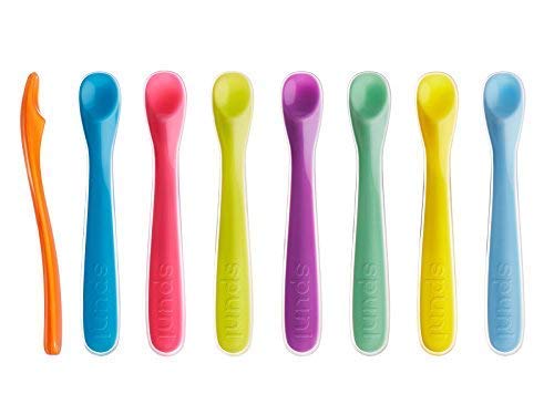SPUNI Baby’s First Feeding Spoon, Non toxic BPA Free, infant self latching eating technology, 2 pack – Green and Purple, made in Germany