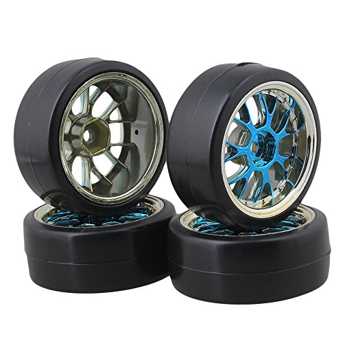BQLZR Blue Plastic Y Shape Hub Wheel Rim with Smooth Tires for RC 1:10 On-road Racing Car & Drift Car Pack Of 4