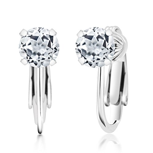 Gem Stone King 2.00 Ct Round Cut White Topaz 925 Sterling Silver Clip On Earrings
