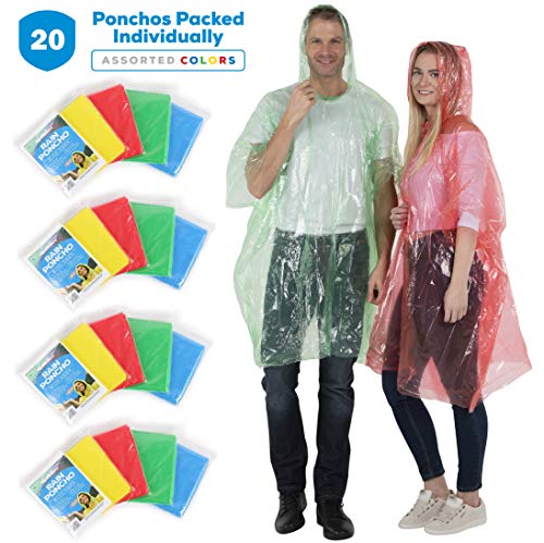 Wealers Rain Poncho Emergency Disposable 20 Ponchos Per Pack 5 Different Colors Adult Size