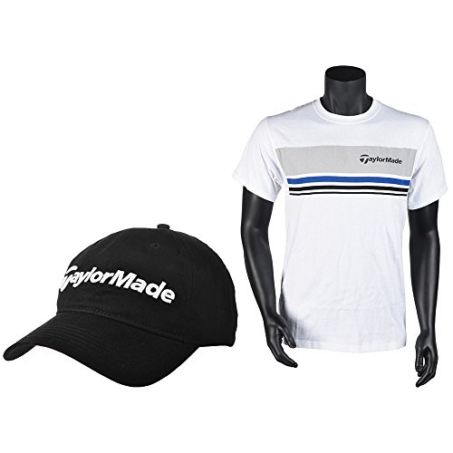 NEW TaylorMade Adjustable Black Hat and White/Blue T-Shirt Combo Mens Size (XL)