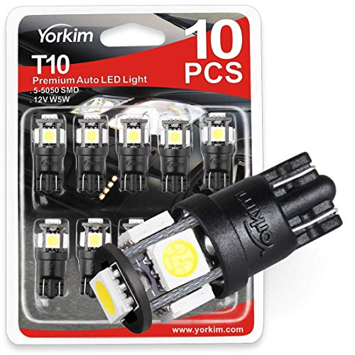 Yorkim T10 194 LED Bulbs 6500K Non Polarity 6th Generation for Car Interior Lights, LED Plate Light, Turn Signal Lights and Corner Lights – W5W 168 2825 T10 194 Wedge LED Bulb, Pack of 10 - White