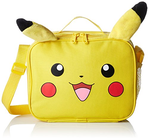 Pokemon Nintendo Plush Pikachu Insulated 3D Plush Ear Soft Portable Travel Zipper Lunch Bag Tote with Adjustable Strap, 10 x 8 x 3 Inches, Yellow