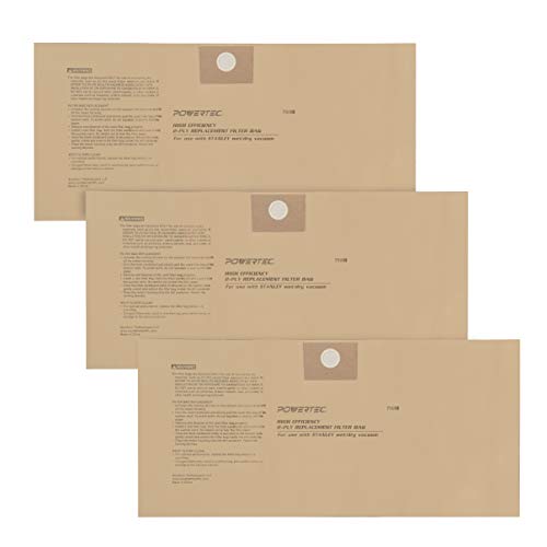 POWERTEC 75003 4-5 Gallon Disposable Filter Bags for Wet/Dry Vacuums | High Efficiency Replacement Filters for Stanley (25-1230) – 3 Pack