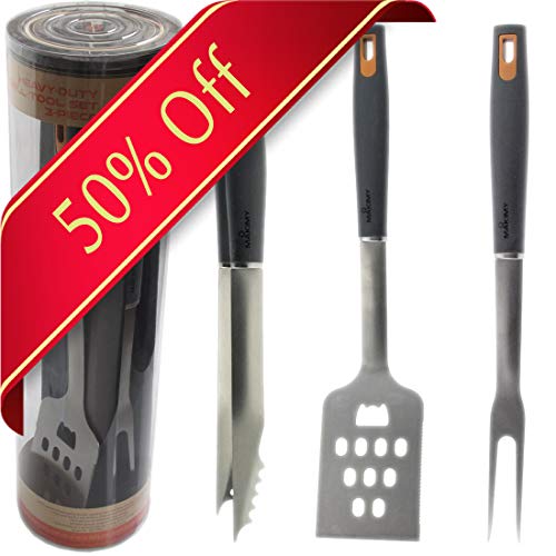 Makimy 3 Piece Barbecue Tool Set – Stainless Steel BBQ Set with Tongs, Grilling Fork, and Spatula – Non-Slip Grill Set – Ideal Gift idea for Grill Lovers