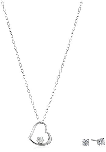 Sterling Silver Swarovski Zirconia Heart Necklace and Stud Earrings Jewelry Set