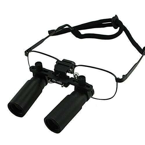 6.0X Magnification Dental Loupes, Prismatic Keplerian Style Nickel Alloy Frame, 45mm Field of View+ 25mm Depth of Field Loupe+ 420mm Working Distance, Flip-Up Flexible Optical Glass Loupe