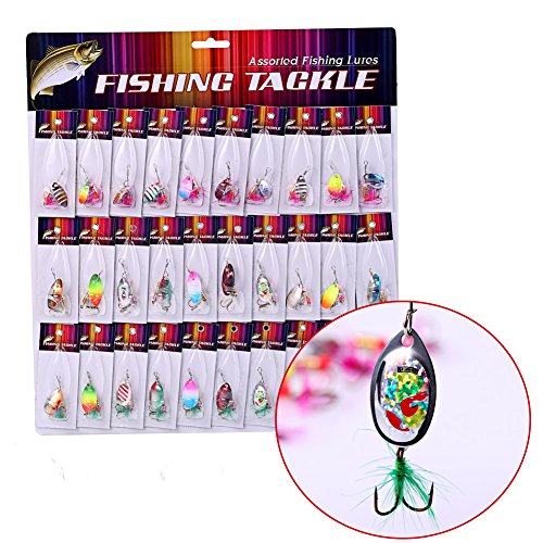 Fishing Spinner Lures Rotatable Inline Spinners Bass Trout Fishing Tackle Baits with Feather Rooster Tails Pack of 30pcs