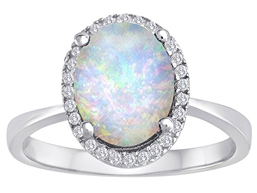 Star K Oval Simulated Opal Halo Ring Sterling Silver