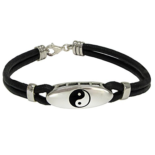 Moonlight Mysteries Sterling Silver Taoist Symbol of Balance Yin Yang Bracelet with Genuine Leather
