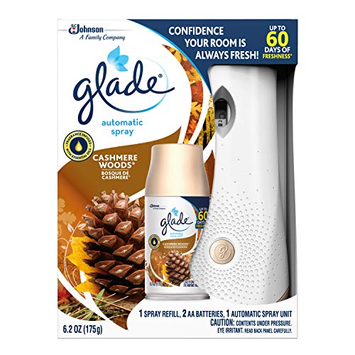Glade Automatic Spray Holder and Cashmere Woods Refill Starter Kit, Battery-Operated Holder for Automatic Spray Refill, Up to 60 Days of Freshness, 10.2 oz, 1 6.2 oz Refill (Packaging May Vary)