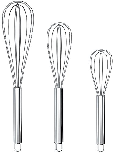 Ouddy 3 Pack Stainless Steel Whisk 8"+10"+12", Kitchen Balloon Hand Stainless Whisk Set for Blending Whisking Beating Stirring