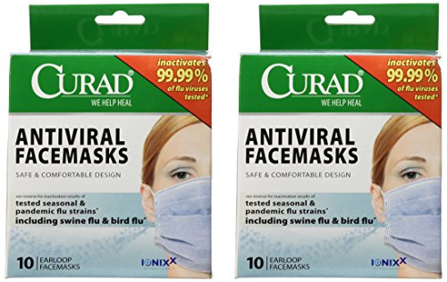 2 Pack of Curad® Antiviral Medical Face Mask, Pleated, 10/Box. Includes 2 Boxes/20 Total.