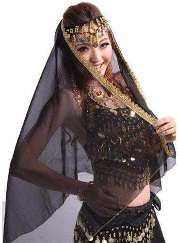 PanDaDa Belly Dance Veils Chiffon Shawl Wraps Head Scarf Headband with Coins
