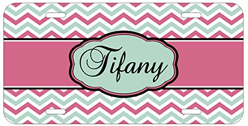 Top Craft Case Personalized Monogrammed Chevron Pink Turquoise Car License Plate Auto Tag