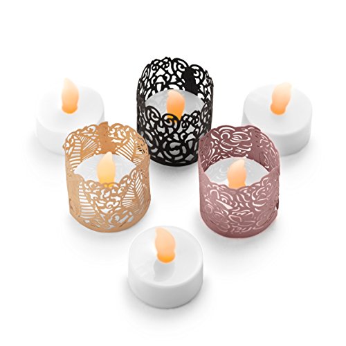 24 Flameless Flickering LED Tea Light by Frux Home and Yard - Battery Operated Candles, Holders Decorative Votive Wraps Included