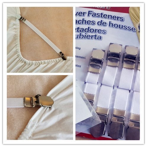 Quality Bed Sheet Grippers Cover Fasteners Suspenders with Metal Clips (Set of 4)
