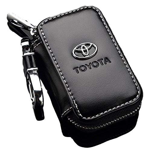 T-KB Toyota Black Premium Leather Car Key Chain Coin Holder Zipper Case Remote Wallet Bag