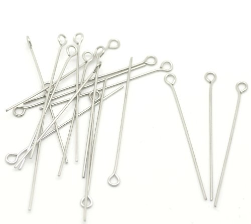 VALYRIA 200pcs Stainless Steel Open Eye Pins Findings Silver Tone 4cm x 0.7mm(21 Gauge)
