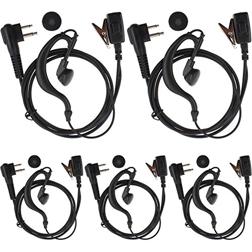 Tenq 2-pin G Shape Earpiece Headset for Motorola Radio Cls1110 Cls1410 Cls1413 Cls1450 Cls1450c(5 Packs)