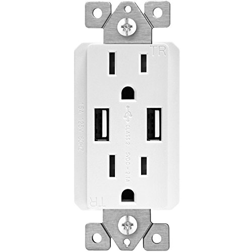 TOPGREENER 2.1A USB Outlet, Outlet with USB ports, USB Power Outlet, 15A Tamper Resistant Duplex Receptacle, TU2152A, White