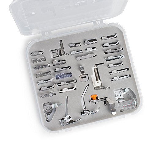 Embroidex 32 Sewing Feet in Deluxe Plastic Storage Case - Works with All Low Shank Embroidery Machines Brother Babylock Bernina New Home Janome Juki Kenmore Singer