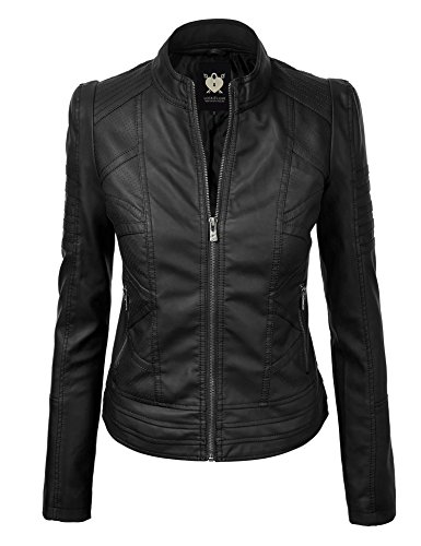 Lock and Love Women's Quilted Faux Leather Moto Biker Jacket