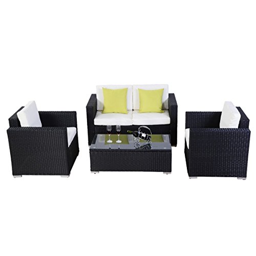4PCS Polar Aurora BLACK Rattan Wicker Garden Outdoor Indoor Sofa Set Furniture