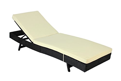 Polar Aurora Adjustable Rattan Wicker Chaise Lounge Chair Sofa Couch Bed with Cushion Outdoor Patio W/Cushion Black