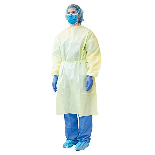 MediChoice Isolation Gowns, Full Back, AAMI, Level 3, Elastic Cuff, Tie Neck and Waist, Spunbond Meltblown Spunbond, XL, Yellow (Bag of 10)