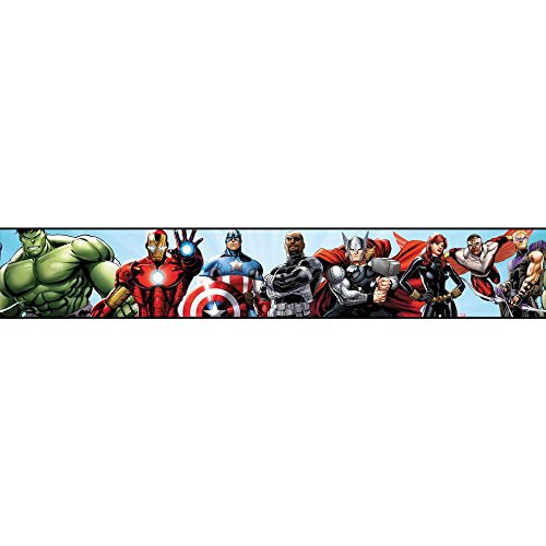 York Wallcoverings DS7841BD Walt Disney Kids II Avengers Border, Pale Blue/Black/Green/Purple/Red/Grey/Brown/Silver
